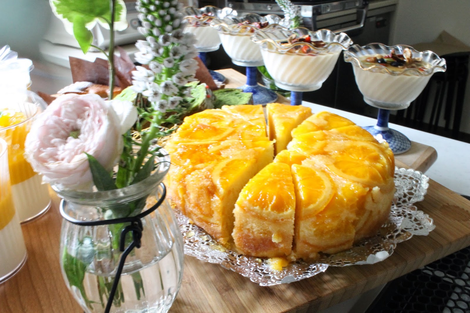 そしてお楽しみのデザートの持ち寄り! 手前のとろりんとしたプリンとぶどうのタルトは estyle えいこさんから。 マンゴーとブランマンジェのデザートと抹茶のケーキは こんがりcafe いずみさんから。 オレンジのケーキは 奥ちゃんのパン工房 けいこさんから |